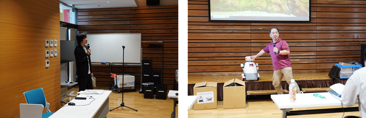【内 容】Choreonoid開発者である株式会社コレオノイド 中岡慎一郎氏を講師にお招きして、実践的かつ高度な技術教育を展開していただいた。同時に、参加学生の技術力向上に加えて、学生間の交流やロボット関連分野の研究に関する情報共有も行った。