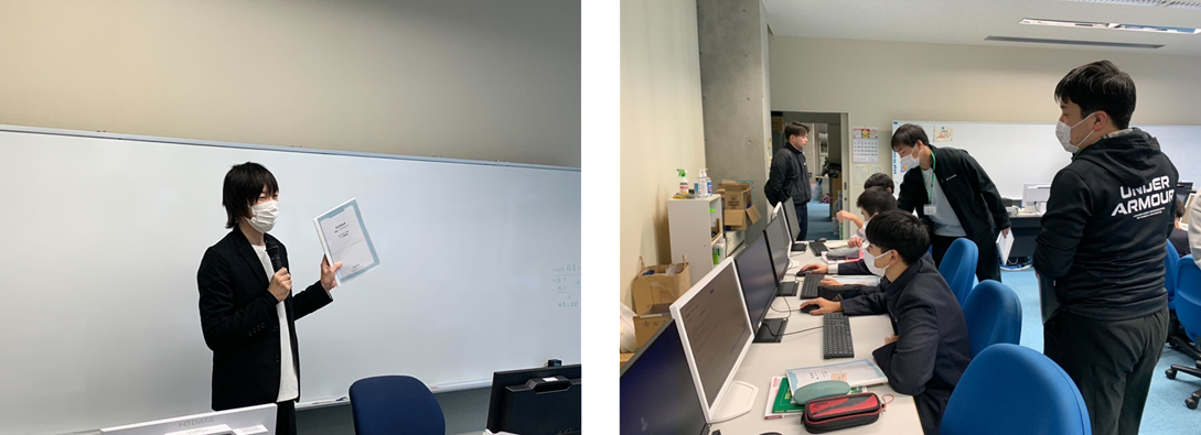 【内 容】ICT技術を持った若手人材の育成を目的として、Pythonプログラミング演習を実施した。TAを含めたグループワークやProcessingを活用したゲーム作成を行った。