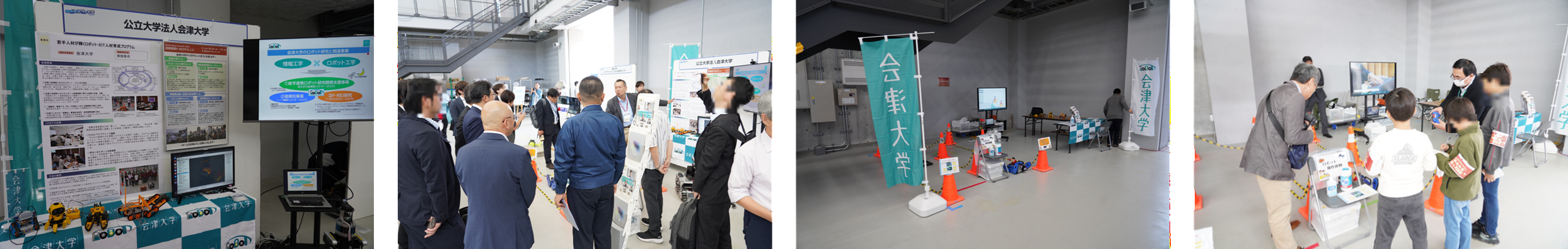 福島ロボットテストフィールド等で開催された複数のイベントにおいて、ミニクローラロボット及びロボットシミュレータの操作体験など、ロボット操作の実演や、本学のロボット研究、復興知事業の実施内容、南相馬ロボット産業協議会との連携等を紹介した。本来の活動では、主に高校生以上が対象となっているが、イベント出展などでは小さな子ども達にも興味をもってもらえるよう、様々なロボットを準備し体験できるよう展示を工夫した。