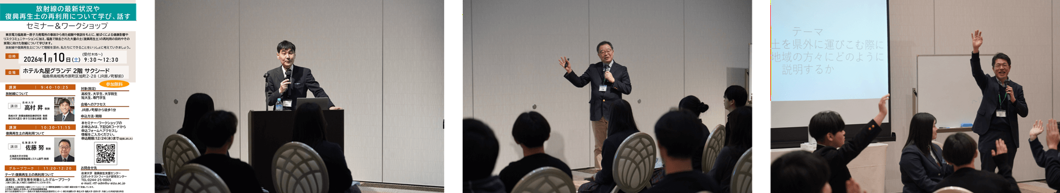 「地域共創分科会」を、今年度も開催した。地元高校生、会津大学生、福島大学生、長崎大学生らが参加、放射線と、復興再生土の活用についての専門家による講演、ワークショップからなるセミナーを開催した。(2024年度の模様